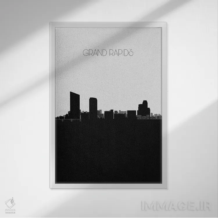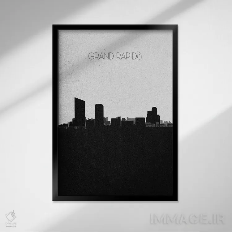 «خط افق شهر گرند رپیدز، میشیگان» اثرِ «آیشه دنیز آکِرمان» با حالوهوای هنر دیجیتال سیاهوسفید، برای فضاهای مدرن و مینیمال انتخابی دقیق و امروزی است.