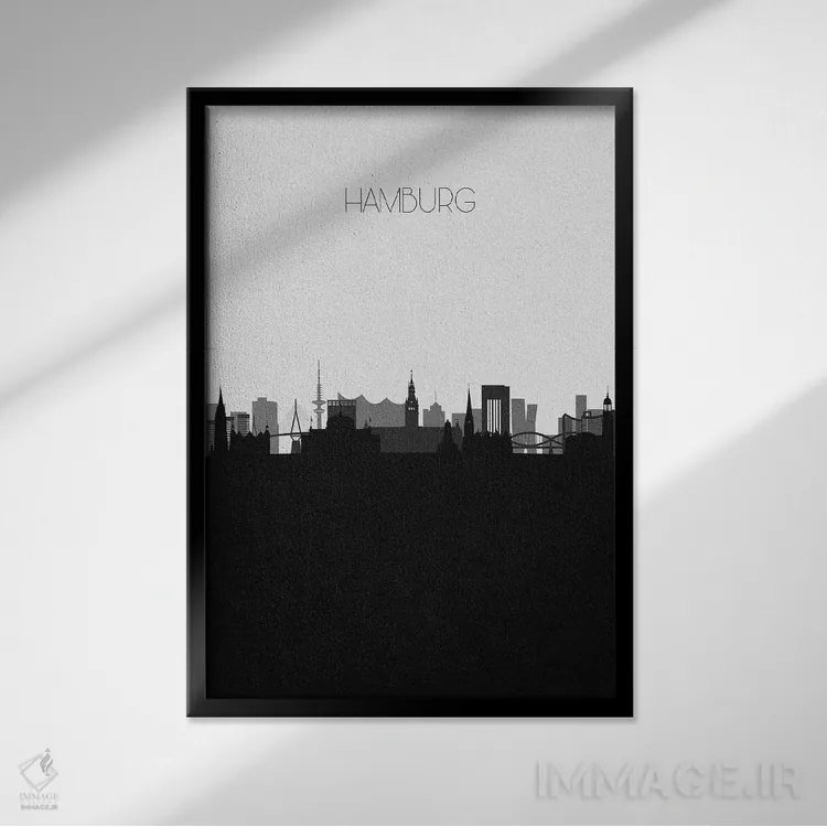 تابلو خط افق شهر هامبورگ، آلمان اثر آیشه دنیز آکِرمان - نمای قاب‌دار مشکی