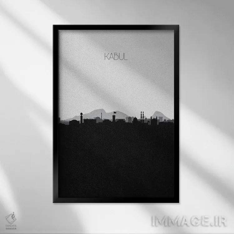 تابلو خط افق شهر کابل، افغانستان اثر آیشه دنیز آکِرمان - نمای قاب‌دار مشکی