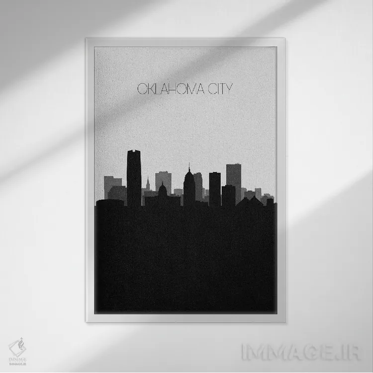 تابلو خط افق شهر اوکلاهما سیتی، اوکلاهما اثر آیشه دنیز آکِرمان - نمای قاب‌دار سفید