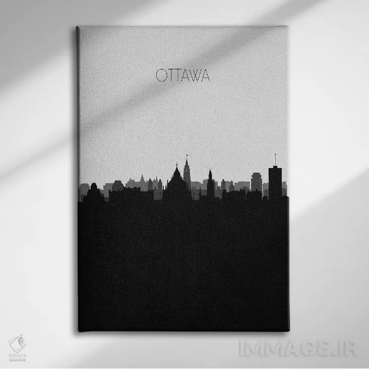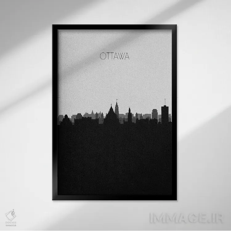 «خط افق شهر اتاوا، کانادا» اثرِ «آیشه دنیز آکِرمان» یک قاب مدرن و کنترلشده است؛ سیاهوسفیدِ دیجیتال کمک میکند موضوعِ این اثر در فضاهای ساده بدرخشد.