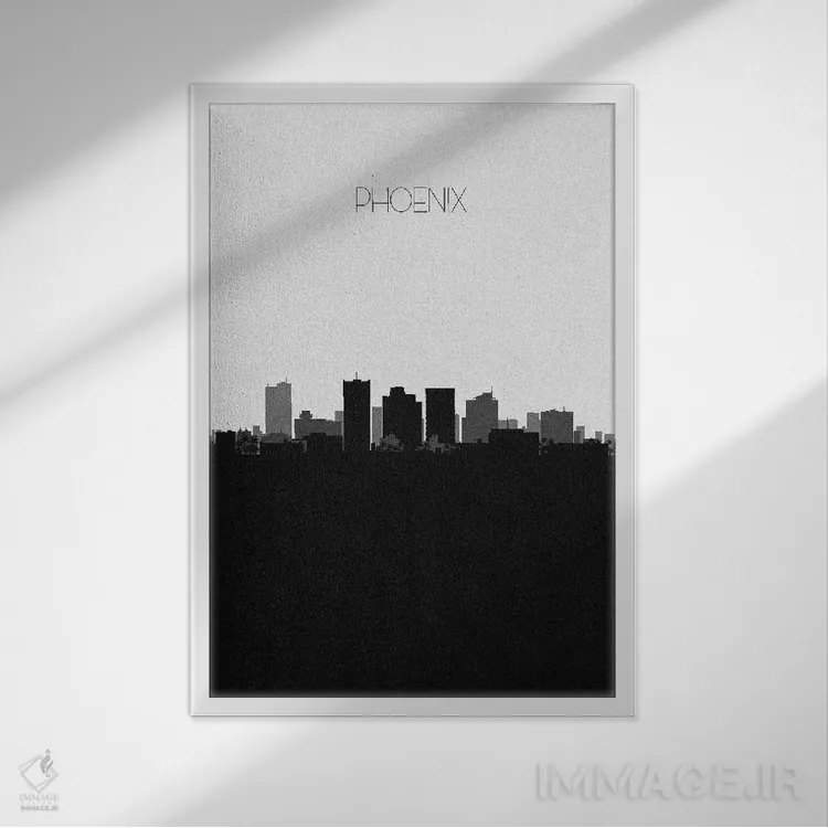 «خط افق شهر فینیکس، آریزونا» اثرِ «آیشه دنیز آکِرمان» یک قاب مدرن و کنترلشده است؛ سیاهوسفیدِ دیجیتال کمک میکند موضوعِ این اثر در فضاهای ساده بدرخشد.
