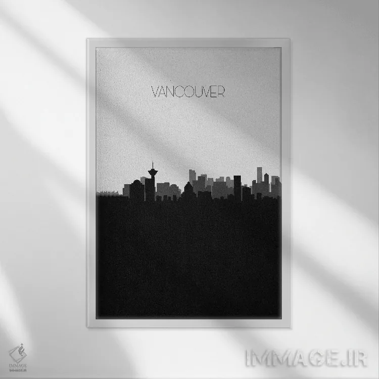 «خط افق شهر ونکوور، کانادا» اثرِ «آیشه دنیز آکِرمان» یک قاب مدرن و کنترلشده است؛ سیاهوسفیدِ دیجیتال کمک میکند موضوعِ این اثر در فضاهای ساده بدرخشد.