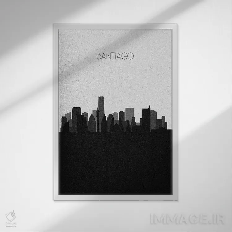 «منظرهٔ افق سانتیاگو، شیلی (شهر)» اثرِ «آیشه دنیز آکِرمان» یک قاب مدرن و کنترلشده است؛ سیاهوسفیدِ دیجیتال کمک میکند موضوعِ این اثر در فضاهای ساده بدرخشد.