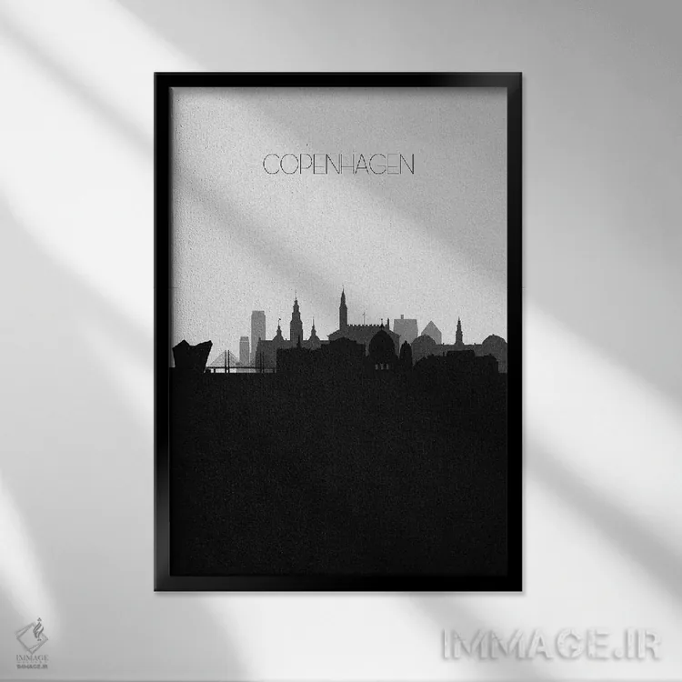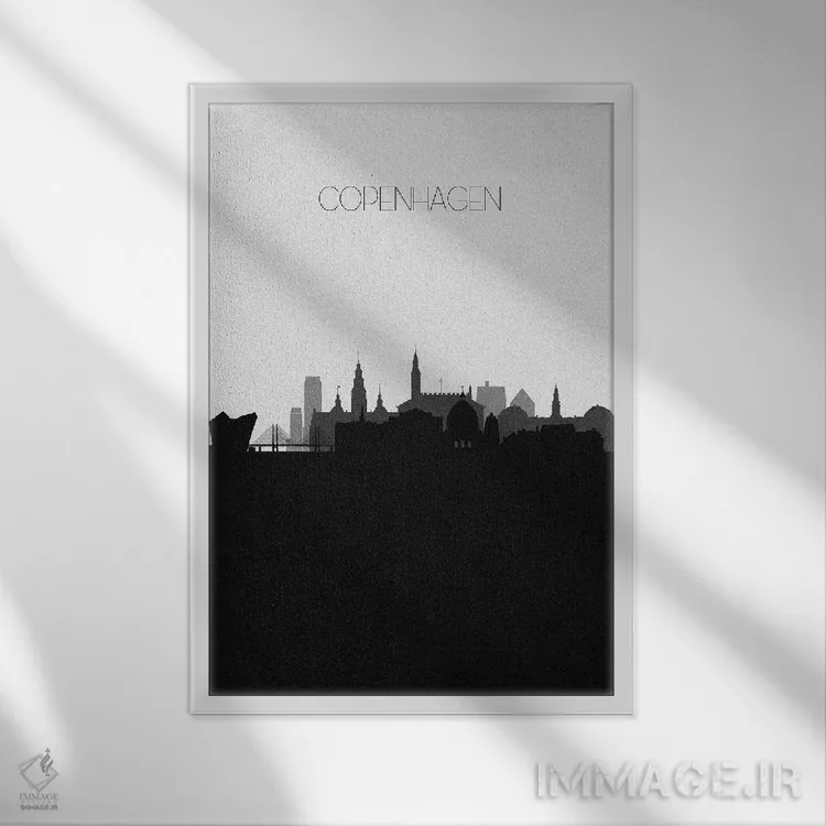 «منظرهٔ افق کپنهاگ، دانمارک (شهر)» اثرِ «آیشه دنیز آکِرمان» با حالوهوای هنر دیجیتال سیاهوسفید، برای فضاهای مدرن و مینیمال انتخابی دقیق و امروزی است.