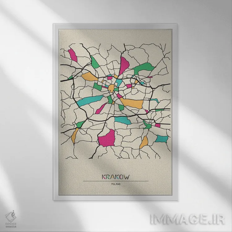 «نقشهٔ کراکوف، لهستان» اثرِ «آیشه دنیز آکِرمان» ترکیب خوبی برای کنار قابهای ساده و خطوط تمیزِ دکوراسیون است.