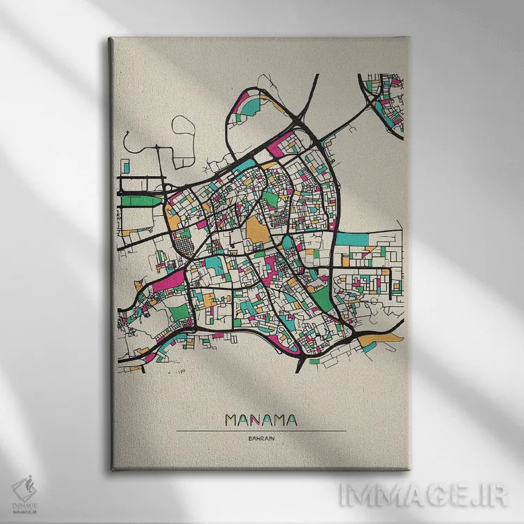 «نقشهٔ منامه، بحرین» اثرِ «آیشه دنیز آکِرمان» با سبک هنری و موضوعِ این اثر، یک انتخاب مدرن و تمیز برای دکور امروز است.
