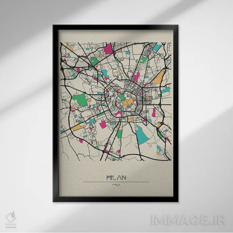 تابلو دکوراتیو نقشه میلان، ایتالیا اثر آیشه دنیز آکرمان