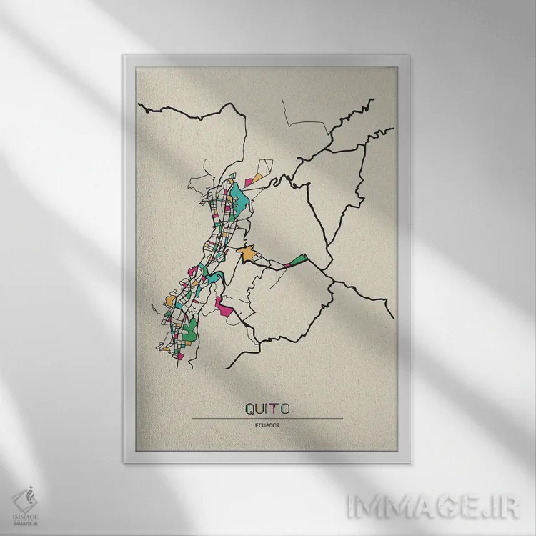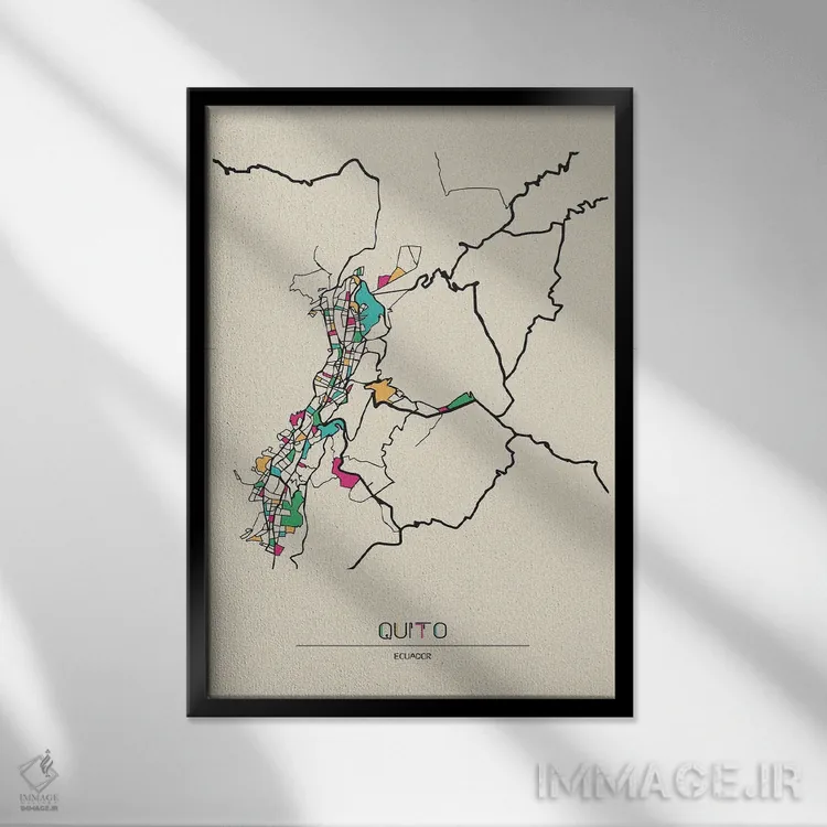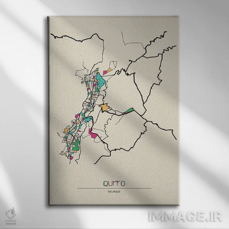 «نقشهٔ کویتو، اکوادور» اثرِ «آیشه دنیز آکِرمان» با حالوهوای دیجیتال و مدرن، برای دکورهای امروزی عالی است.