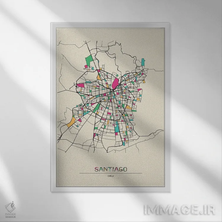 تابلو نقشهٔ سانتیاگو، شیلی اثر آیشه دنیز آکِرمان - نمای قاب‌دار سفید