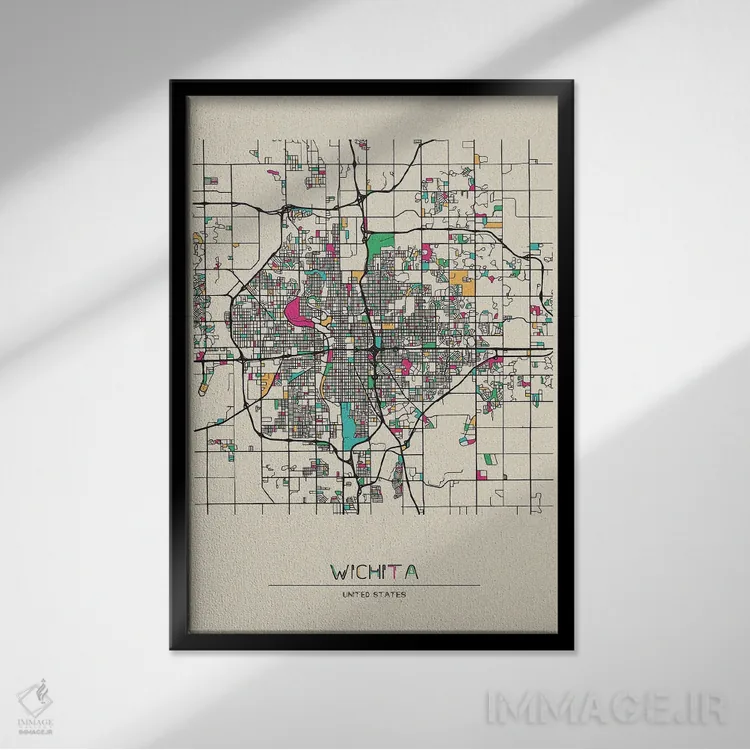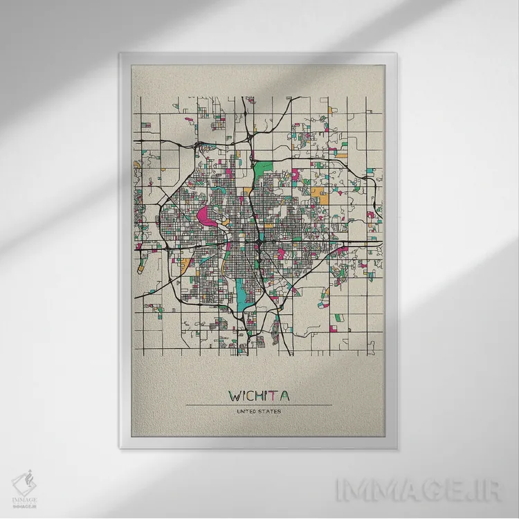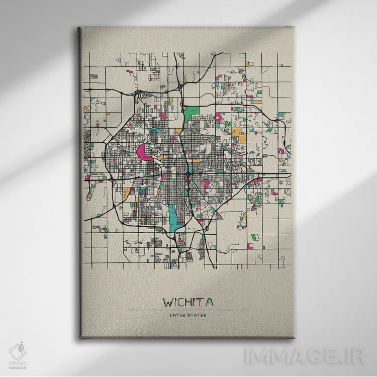 «نقشهٔ ویچیتا، کانزاس» اثرِ «آیشه دنیز آکِرمان» برای چیدمانهای صنعتی یا مدرنِ شهری هم مینشیند؛ چون تصویر، واضح و امروزی است.