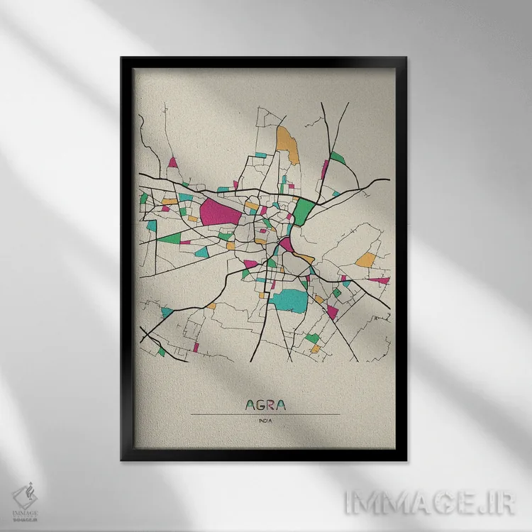 «نقشهٔ آگرا، هند» اثرِ «آیشه دنیز آکِرمان» با حس هنری، این اثر را به دیوار میآورد؛ برای فضاهای کمجزئیات و رنگهای خنثی، عالی است.
