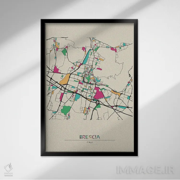 تابلو نقشهٔ برشا، ایتالیا اثر آیشه دنیز آکِرمان - نمای قاب‌دار مشکی