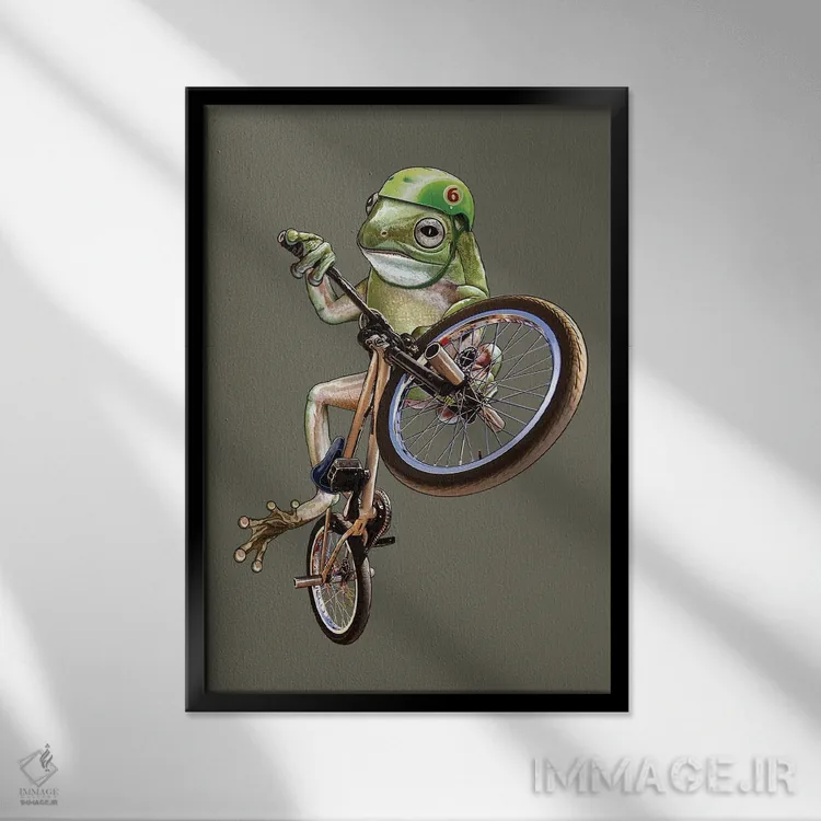 «قورباغه BMX (دوچرخهسواری نمایشی)» اثرِ «آدام لاولس» از آن کارهاییست که به دیوار، انرژیِ نرم و زنده میدهد؛ برای اتاق بازی یا گوشهٔ مطالعه انتخاب خوبیست. اگر دنبال اثر دوستداشتنیِ «بیغلو» هستید، این یکی دقیق مینشیند.