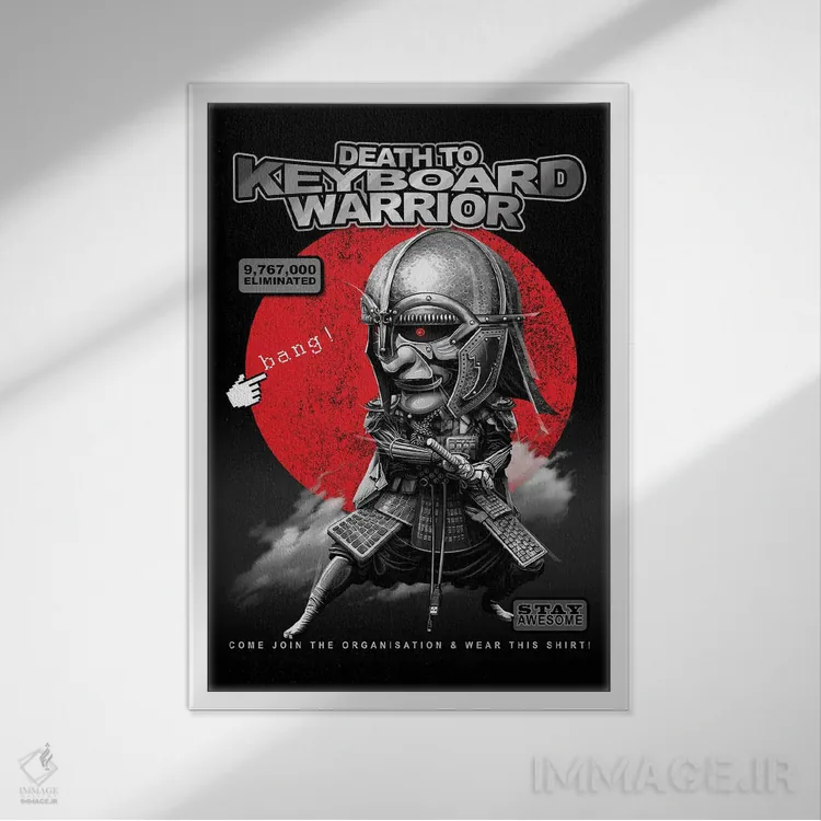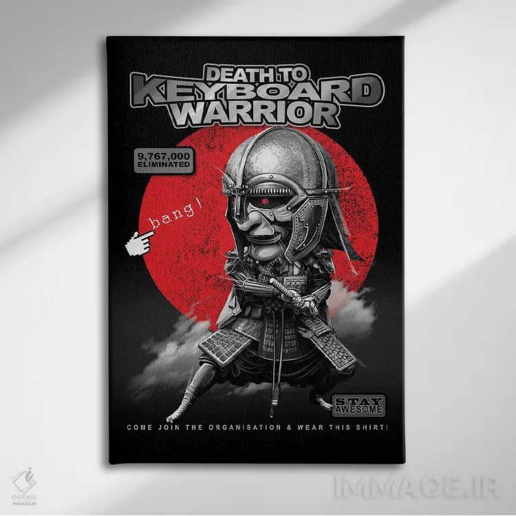 تابلو دکوراتیوِ «جنگجوی صفحهکلید (کاربر فعال اینترنت)» با موضوعِ این اثر؛ مناسب برای نشیمن، اتاق خواب یا دیوار کنار میز ناهارخوری اثرِ «آدام لاولس».
