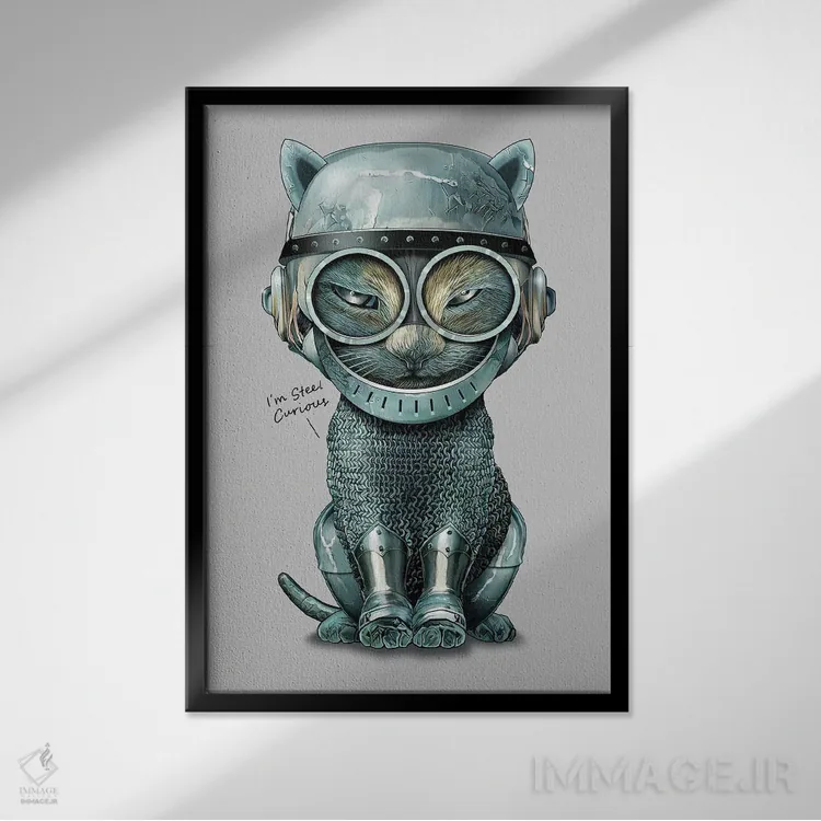 این اثر با عنوان «کنجکاوی فولادی» اثرِ «آدام لاولس» یک لبخند ریز به چیدمان میدهد؛ برای اتاق بازی یا گوشهٔ مطالعه انتخابی خوشسلیقه است. با قاب چوبی یا مشکی، حس مرتبتری پیدا میکند.