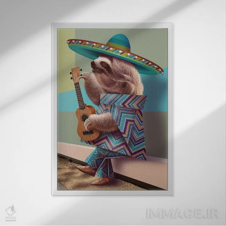 تابلو کُندروی مکزیکی در حال کوک کردن گیتار اثر آدام لاولس