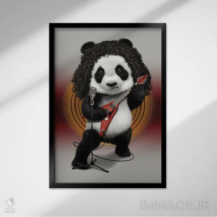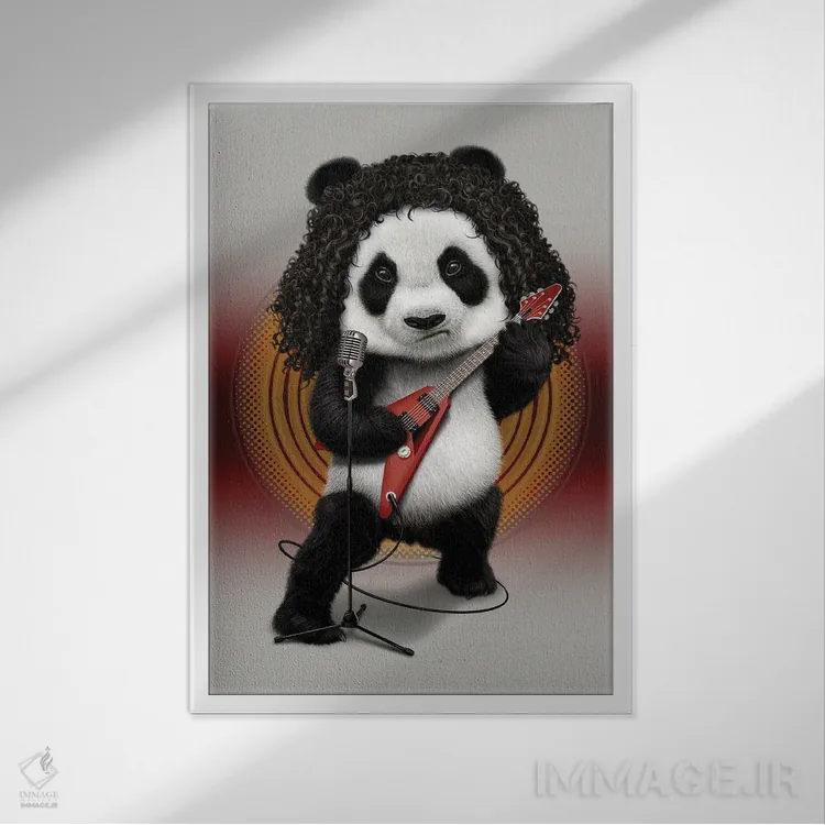 تابلو پاندای فلزی اثر آدام لاولس - نمای قاب‌دار مشکی