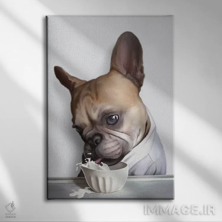 برای اتاقی که به یک عنصر دوستداشتنی نیاز دارد، «پاگ در حال نوشیدن (پاگ، نژاد سگ)» اثرِ «آدام لاولس» گرما و شخصیت به فضا اضافه میکند؛ برای نشیمنهای خانوادگی انتخابی خوشسلیقه است. هم فضا را گرم میکند، هم شلوغش نمیکند.