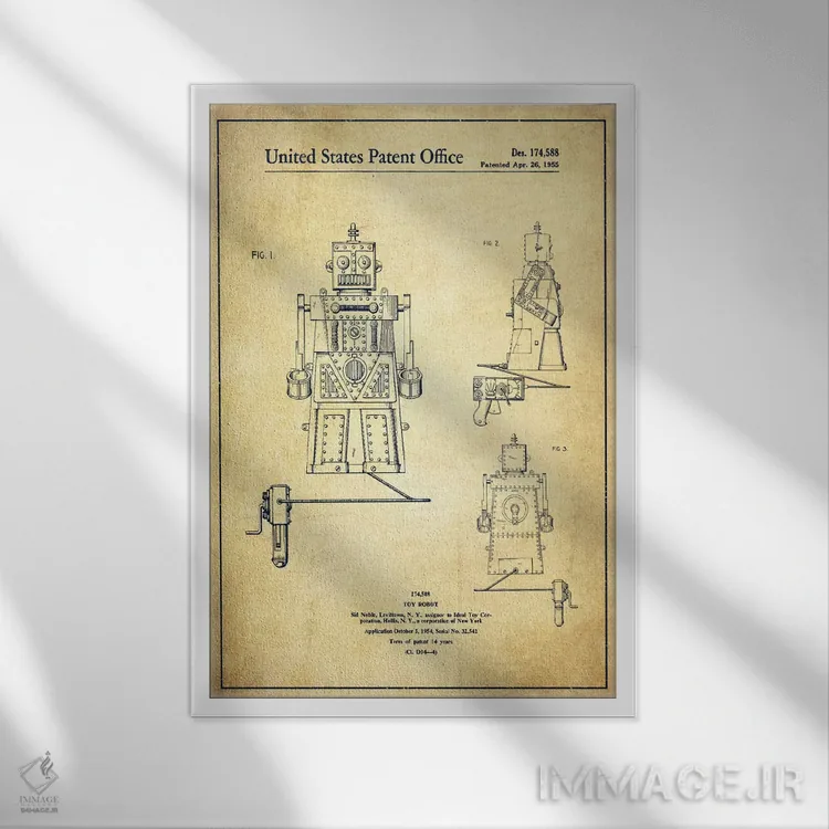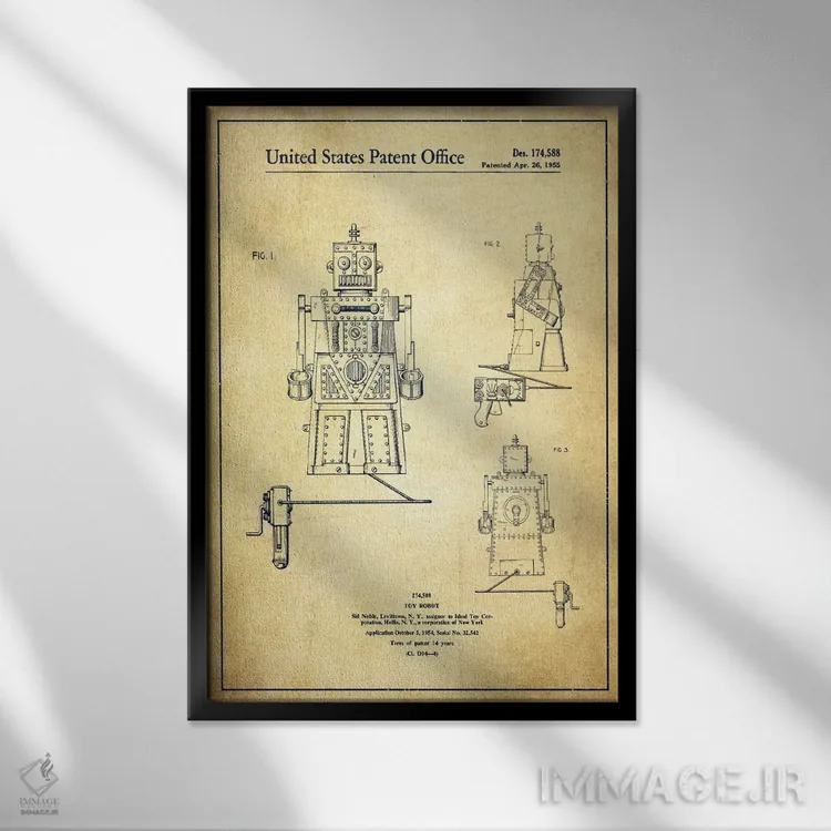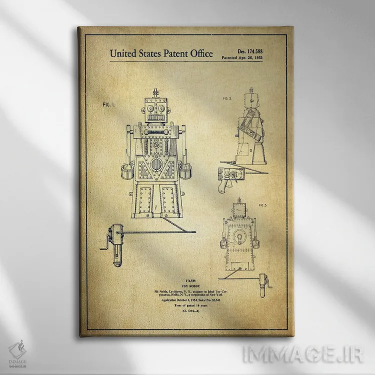 تابلو نقشهٔ پتنت ربات اسباببازی قدیمی اثر پیکسل کهنه (استودیو/نام هنری)
