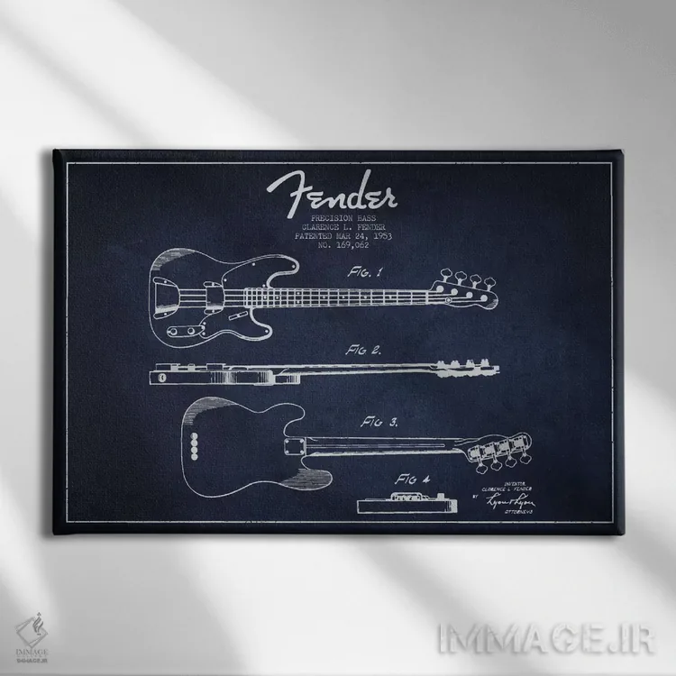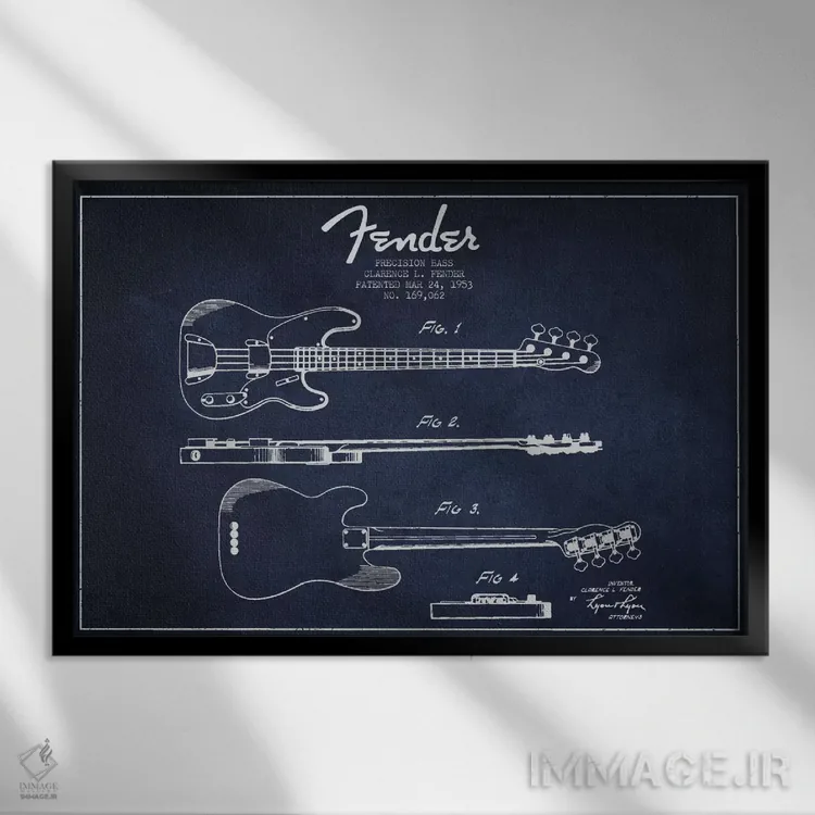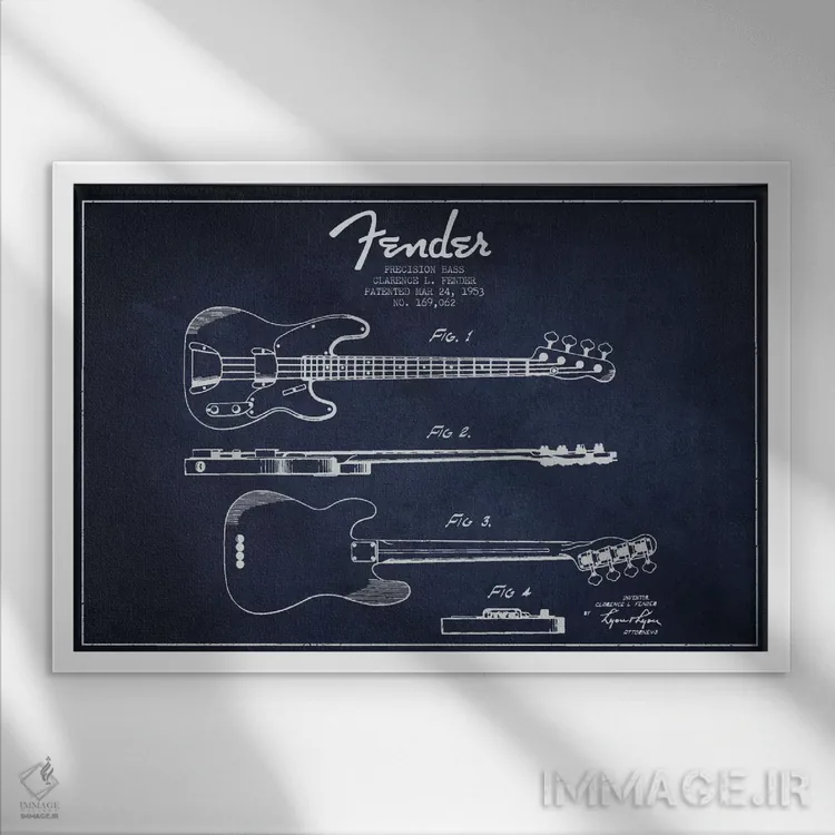 تابلو نقشهٔ پتنت گیتار فندر (آبی نفتی) اثر پیکسل کهنه (استودیو/نام هنری)