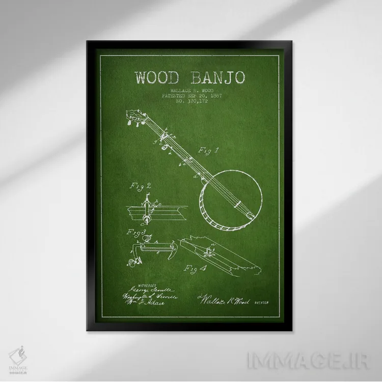 تابلو نقشهٔ پتنت بانجو چوبی (سبز) اثر پیکسل کهنه (استودیو/نام هنری)