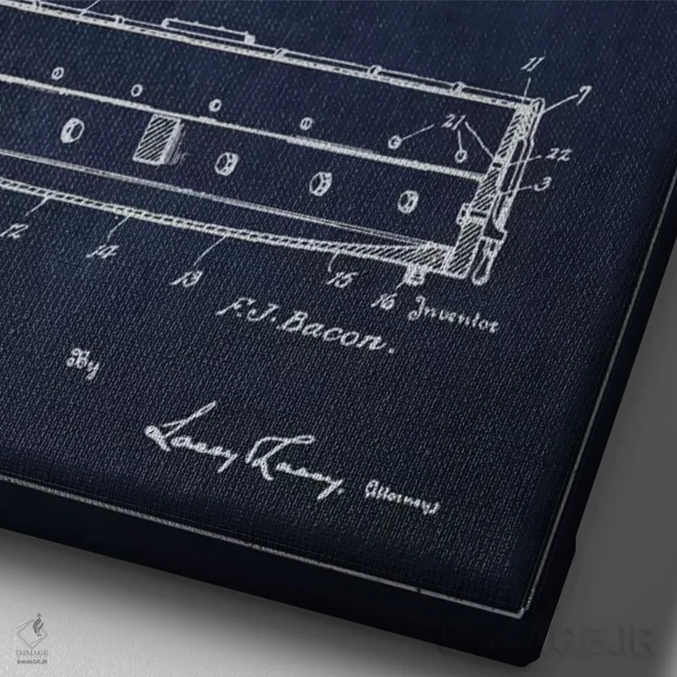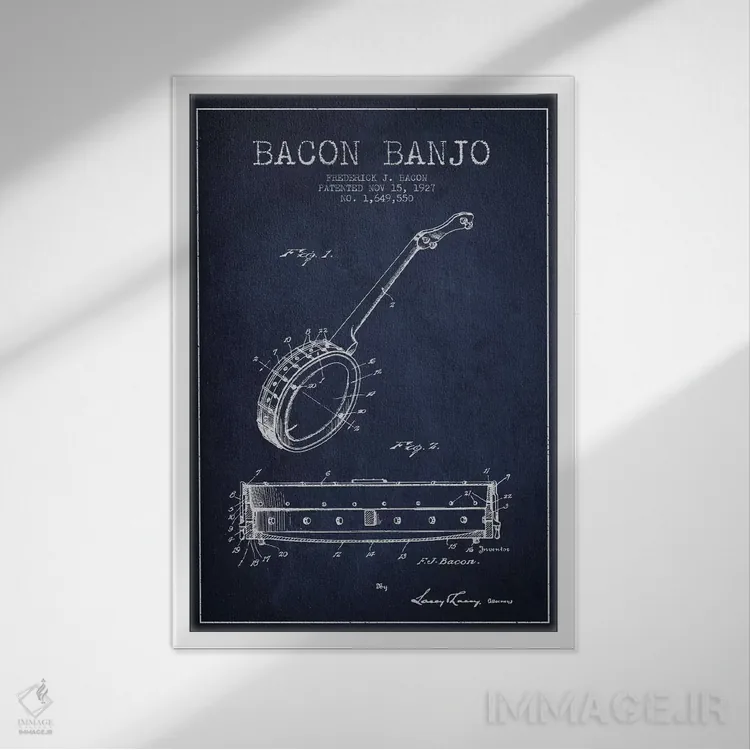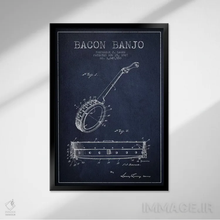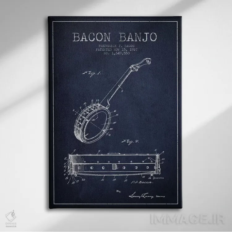 تابلو نقشهٔ پتنت بانجو بیکن (آبی نفتی) اثر پیکسل کهنه (استودیو/نام هنری)