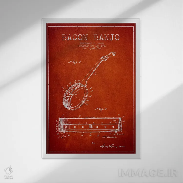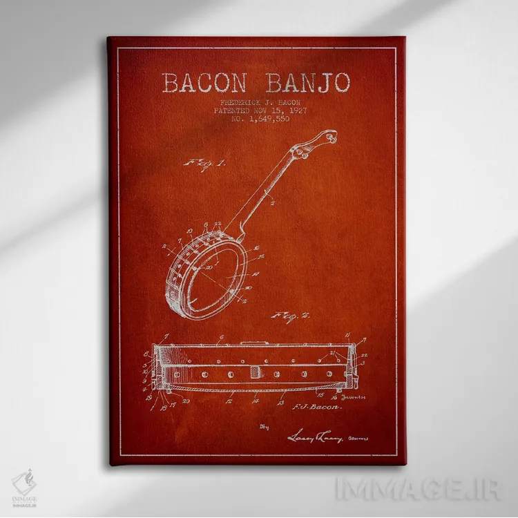 تابلو نقشهٔ پتنت بانجو بیکن (قرمز) اثر پیکسل کهنه (استودیو/نام هنری)