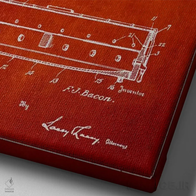 اگر دکور شما کلاسیک/رترو است، «نقشهٔ پتنت بانجو بیکن (قرمز)» اثرِ «پیکسل کهنه (استودیو/نام هنری)» با سبک هنری کاملاًً مینشیند.
