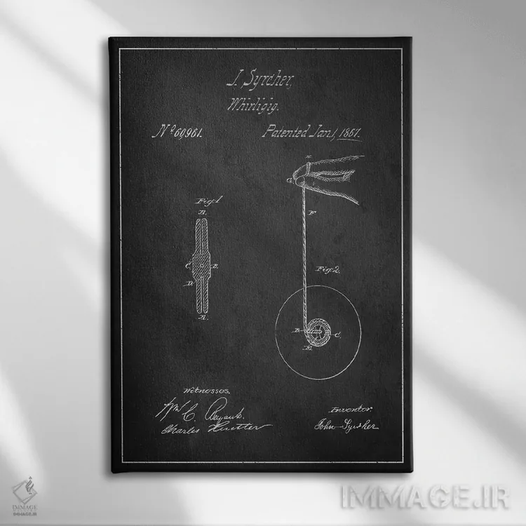 تابلو نقشهٔ پتنت یو یو (تیره) اثر پیکسل کهنه (استودیو/نام هنری) - نمای قاب‌دار سفید