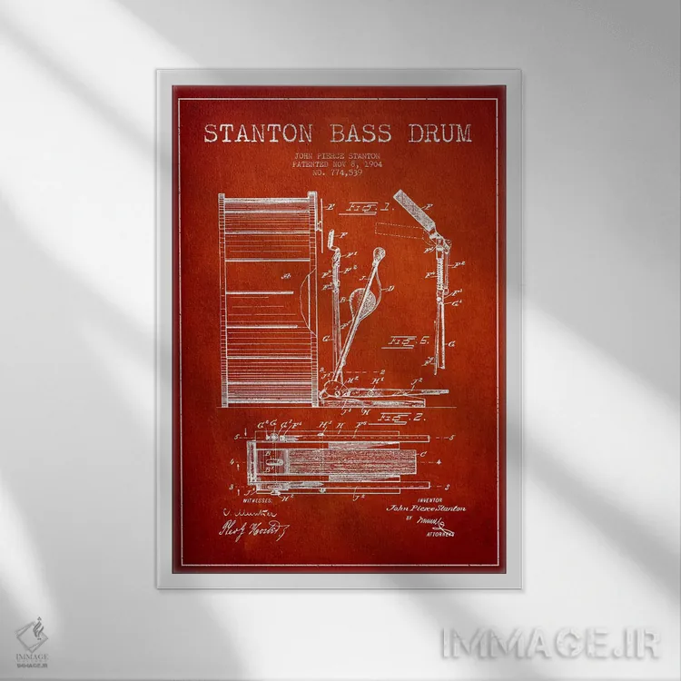 تابلو نقشهٔ پتنت گیتار بیس استنتون (قرمز) اثر پیکسل کهنه (استودیو/نام هنری)