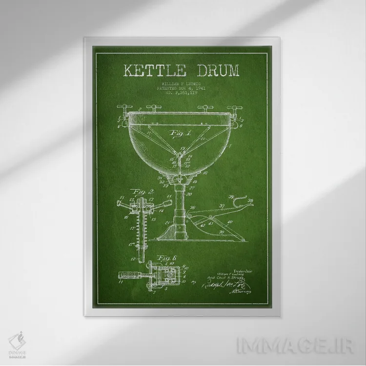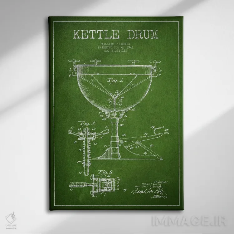 تابلو نقشهٔ پتنت کتل درام لودویگ (سبز) اثر پیکسل کهنه (استودیو/نام هنری)