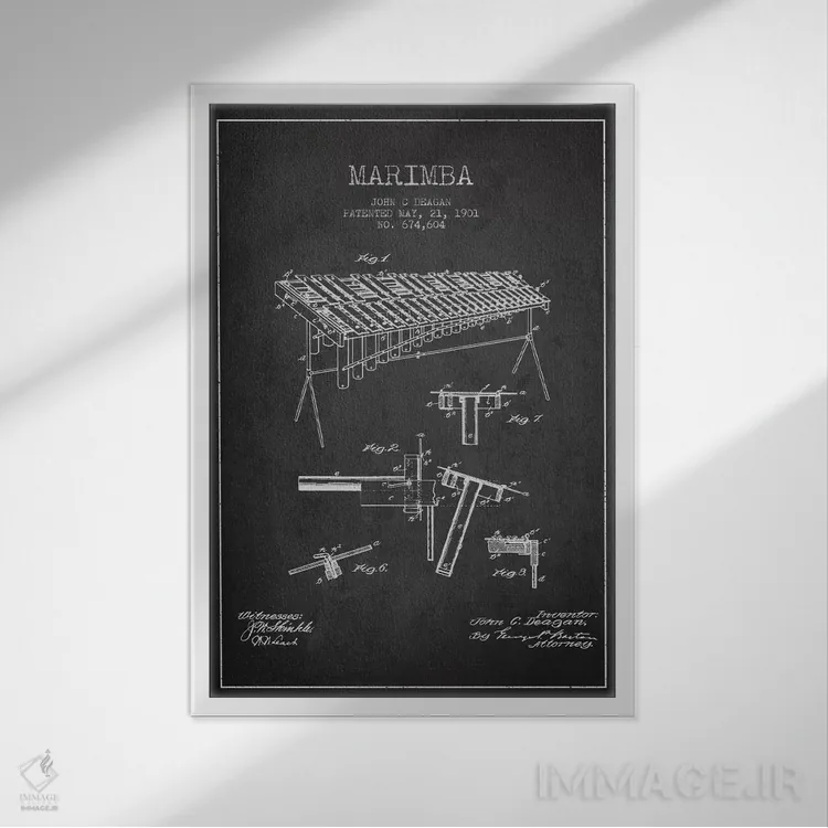 تابلو نقشهٔ پتنت ماریمبا (ذغالی) اثر پیکسل کهنه (استودیو/نام هنری) - نمای قاب‌دار مشکی
