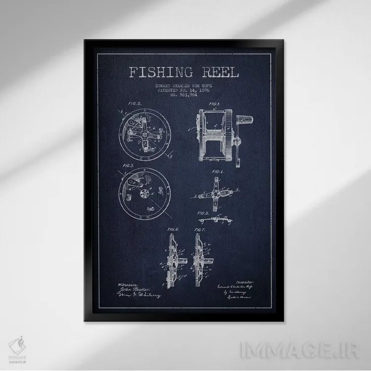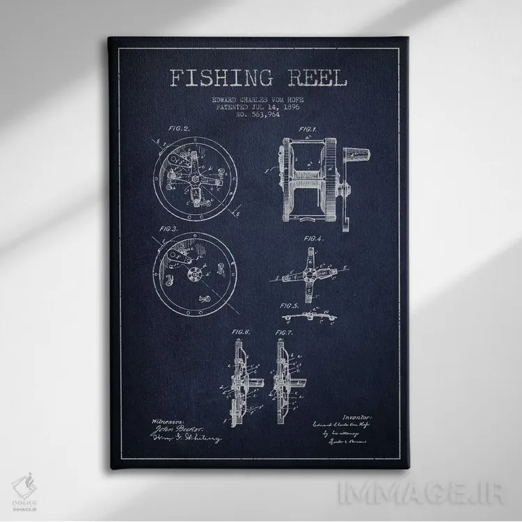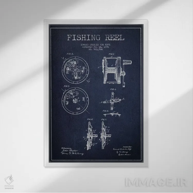 تابلو دکوراتیوِ «نقشهٔ حقامتیاز قرقره ماهیگیری سرمهای»؛ مناسب برای فضاهایی با چوب تیره، چراغهای گرم و اکسسوریهای کلاسیک اثرِ «پیکسل کهنه (استودیو/نام هنری)».