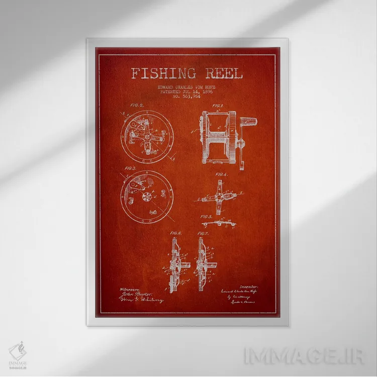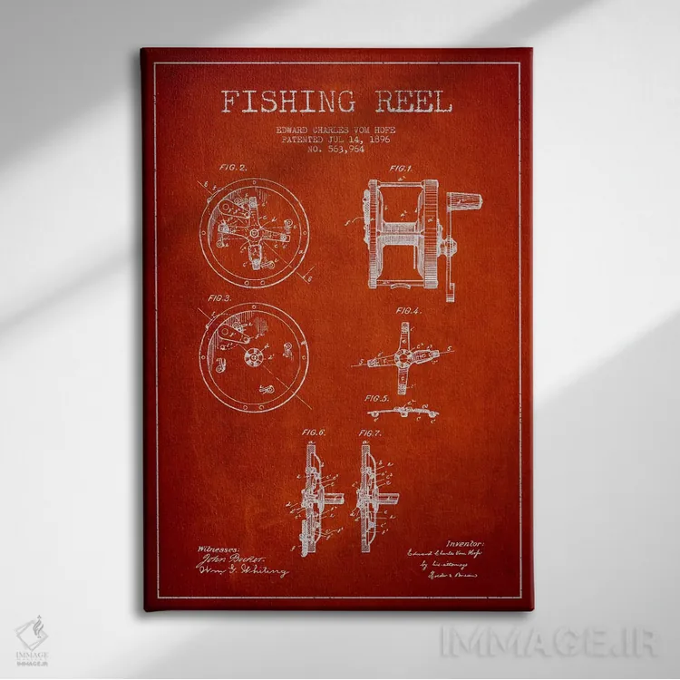 تابلو نقشهٔ حقامتیاز قرقره ماهیگیری قرمز اثر پیکسل کهنه (استودیو/نام هنری)