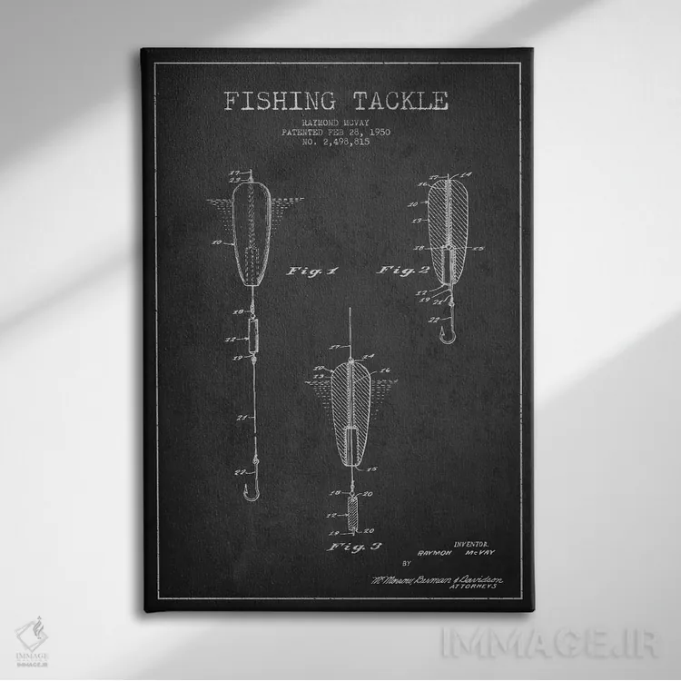 تابلو نقشهٔ حق‌امتیاز لوازم ماهیگیری تیره اثر پیکسل کهنه (استودیو/نام هنری) - نمای پرسپکتیو محصول