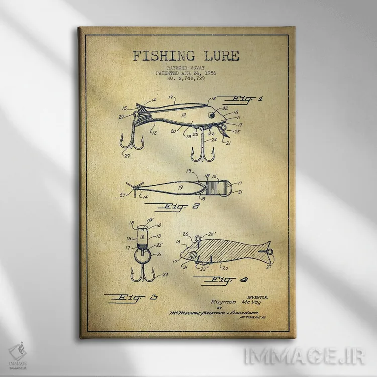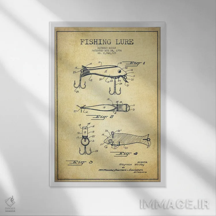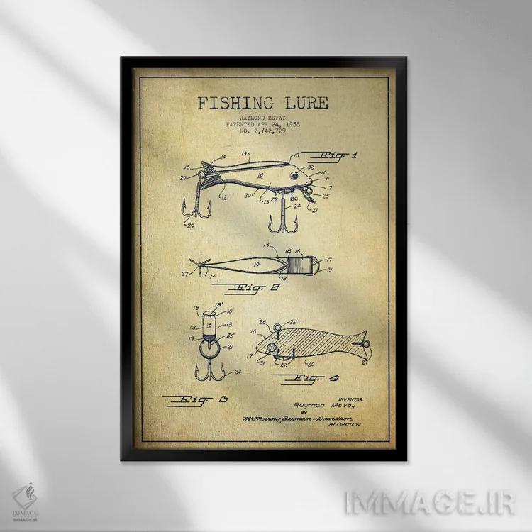 تابلو دکوراتیوِ «نقشهٔ حقامتیاز لوازم ماهیگیری کلاسیک»؛ مناسب برای فضاهایی با چوب تیره، چراغهای گرم و اکسسوریهای کلاسیک اثرِ «پیکسل کهنه (استودیو/نام هنری)».