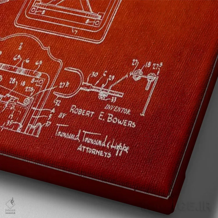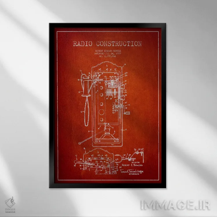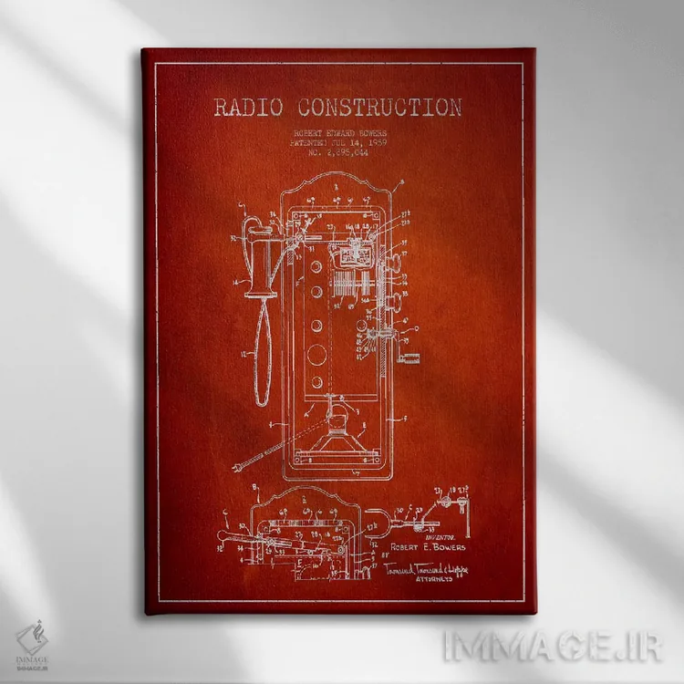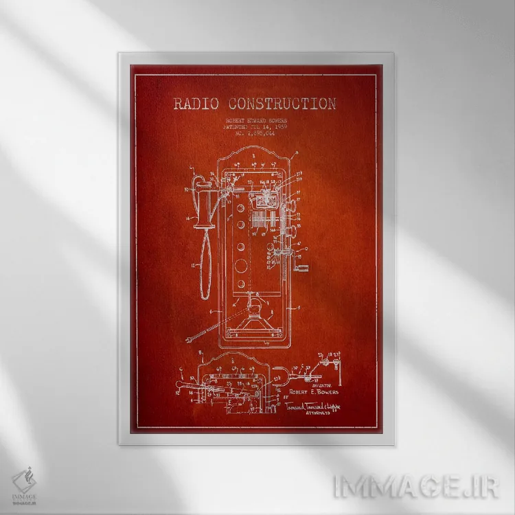 اگر دکور شما کلاسیک/رترو است، «نقشهٔ ثبت اختراع رادیو باوِرز قرمز» اثرِ «پیکسل کهنه (استودیو/نام هنری)» با سبک هنری کاملاًً مینشیند.