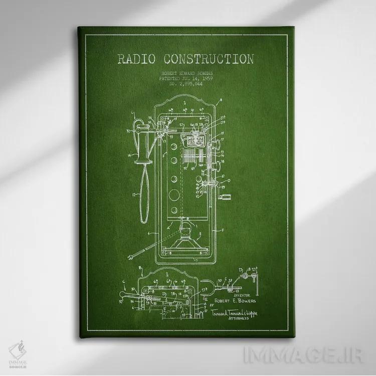 تابلو نقشهٔ ثبت اختراع رادیو باوِرز سبز اثر پیکسل کهنه (استودیو/نام هنری)