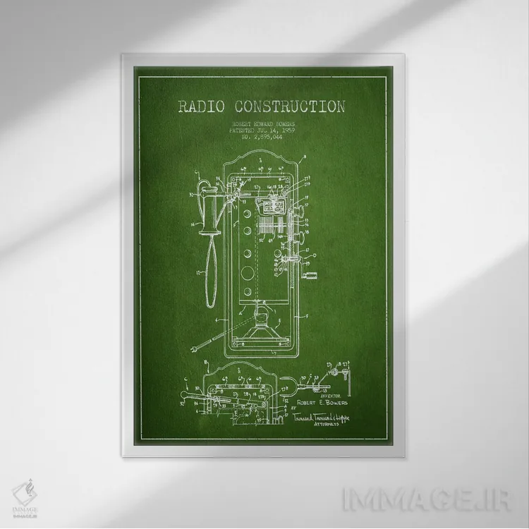 «نقشهٔ ثبت اختراع رادیو باوِرز سبز» اثرِ «پیکسل کهنه (استودیو/نام هنری)» یک انتخاب مطمئن و هماهنگپذیر برای کسانیست که میخواهند فضا شخصیت و داستان داشته باشد.