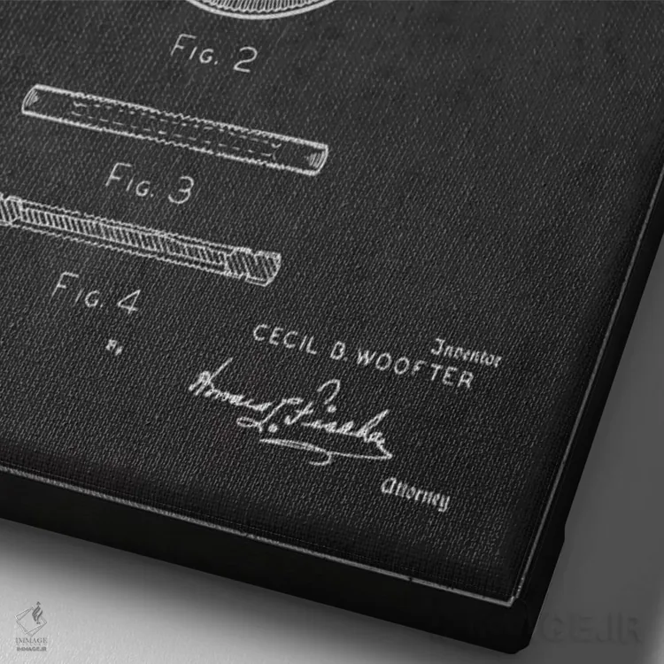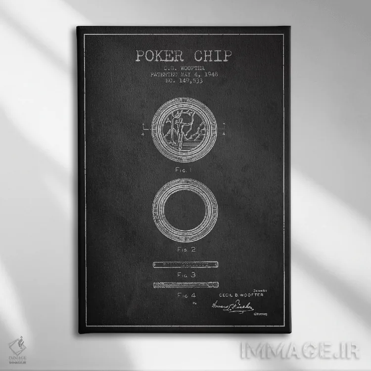 «نقشهٔ ثبت اختراع چیپ پوکر ۲ ذغالی» اثرِ «پیکسل کهنه (استودیو/نام هنری)» با حالوهوای هنری، حس نوستالژی را شیک و دکورپذیر به فضا اضافه میکند.