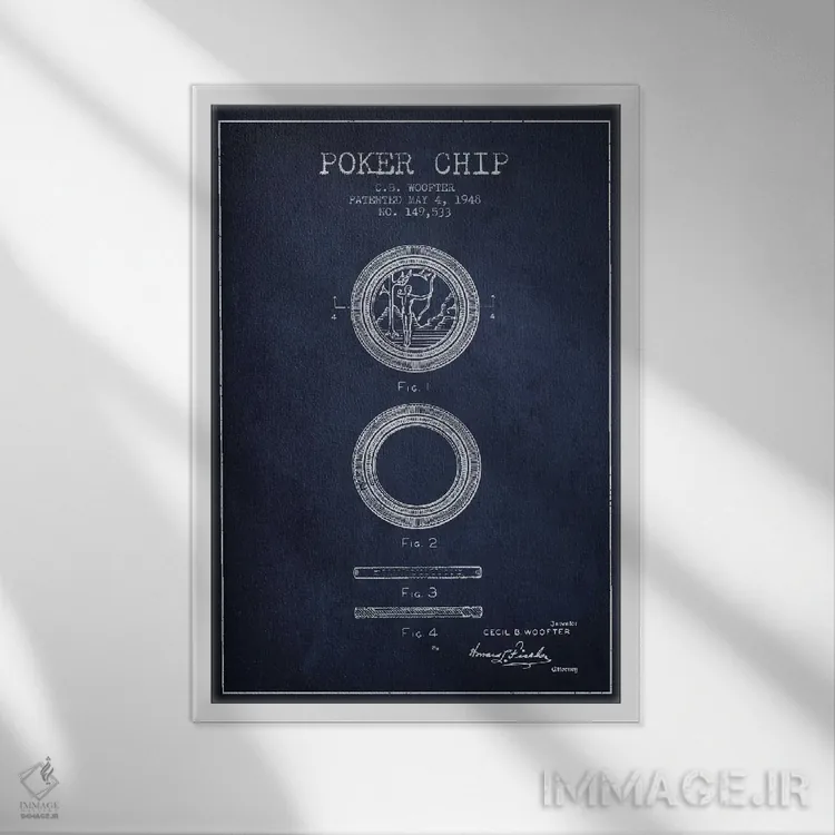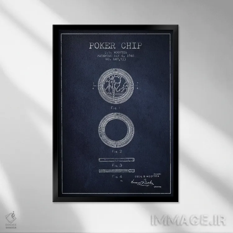 تابلو دکوراتیو نقشه ثبت اختراع چیپ پوکر ۲ سرمه ای اثر پیکسل کهنه