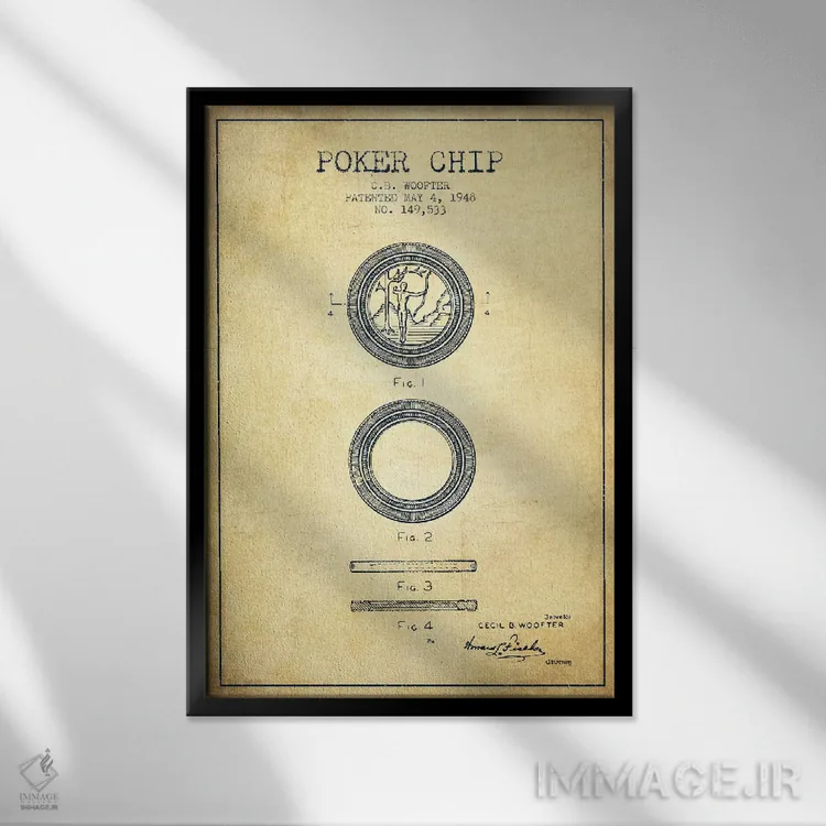 تابلو نقشهٔ ثبت اختراع ژتون پوکر ۲ (طرح قدیمی) اثر پیکسل کهنه (استودیو/نام هنری)