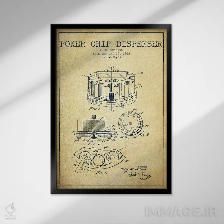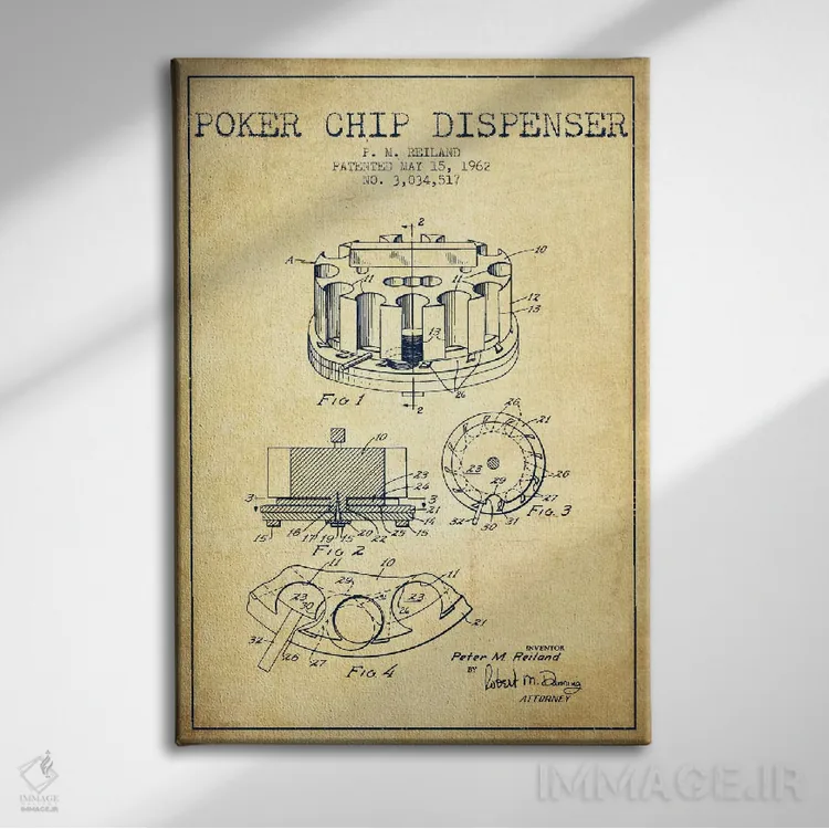 تابلو نقشهٔ ثبت اختراع ژتون پوکر ۳ (طرح قدیمی) اثر پیکسل کهنه (استودیو/نام هنری)