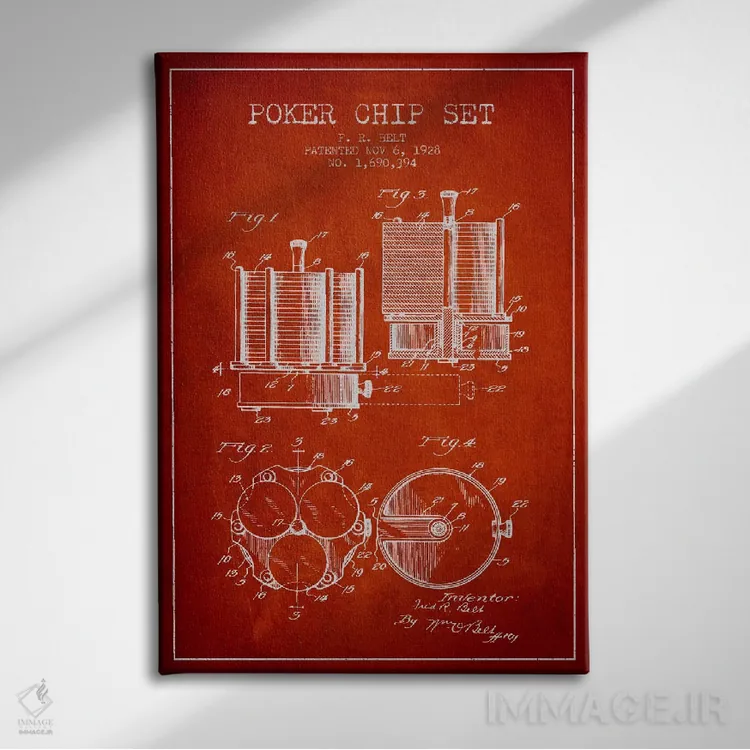 تابلو نقشهٔ ثبت اختراع ژتون‌های پوکر ۱ (قرمز) اثر پیکسل کهنه (استودیو/نام هنری) - نمای پرسپکتیو محصول