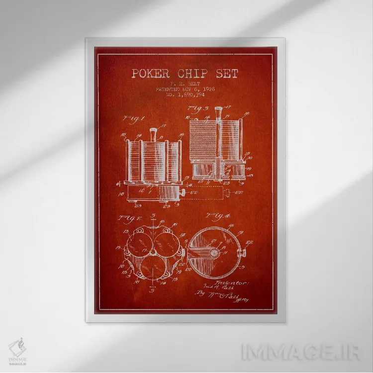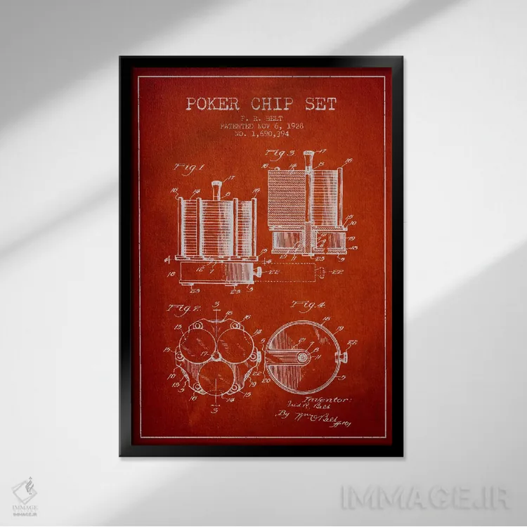 تابلو نقشهٔ ثبت اختراع ژتون‌های پوکر ۱ (قرمز) اثر پیکسل کهنه (استودیو/نام هنری) - نمای قاب‌دار سفید