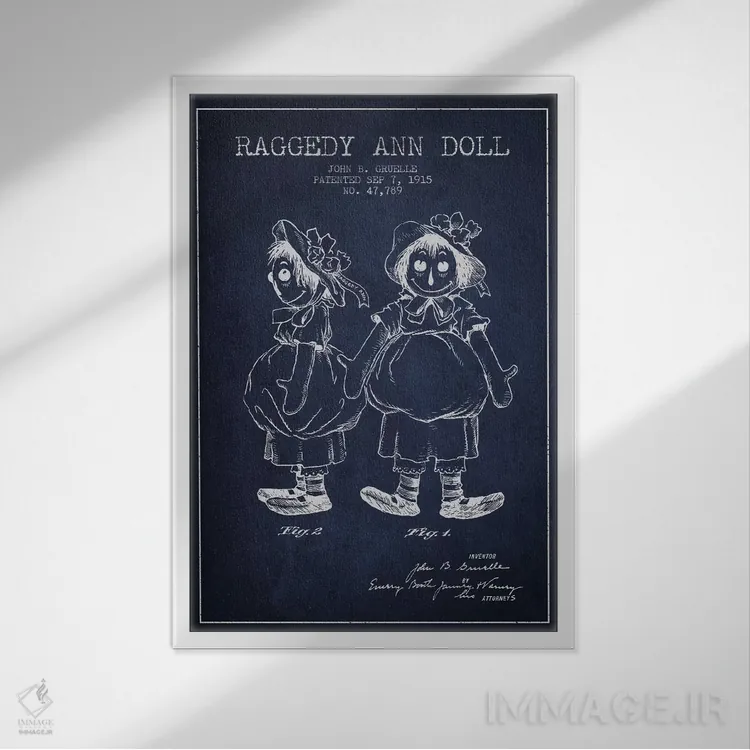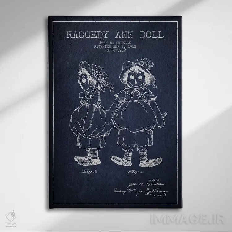 تابلو نقشهٔ ثبت اختراع عروسک رگدی آن (آبی تیره) اثر پیکسل کهنه (استودیو/نام هنری)