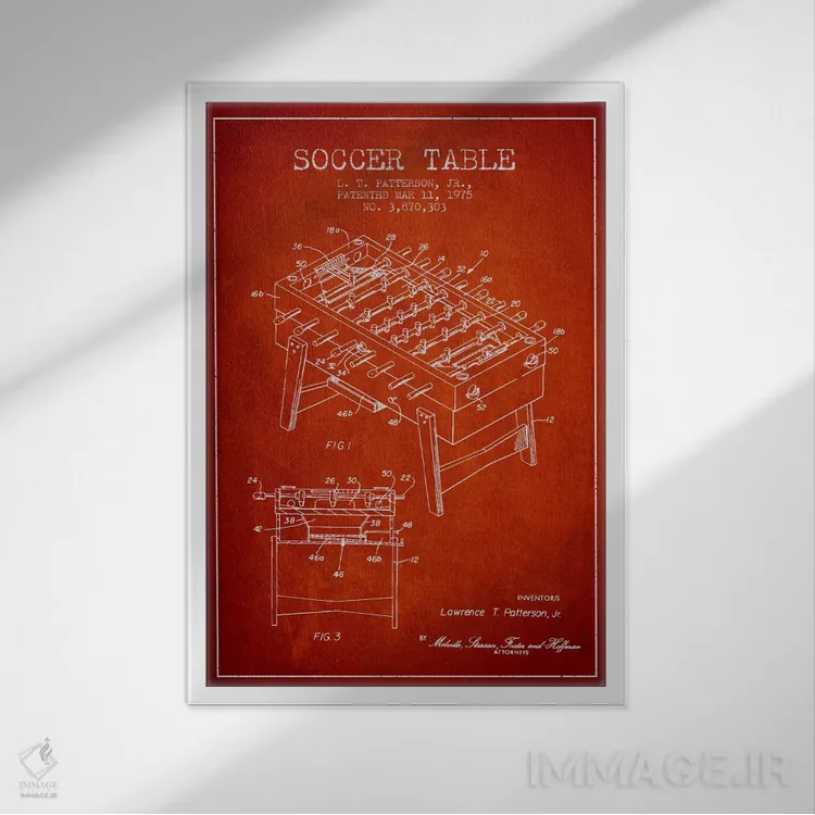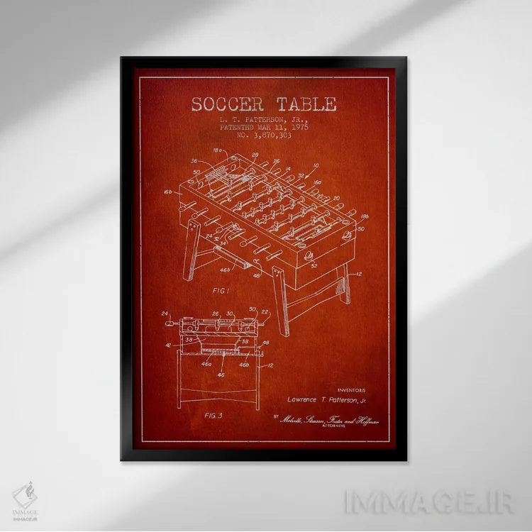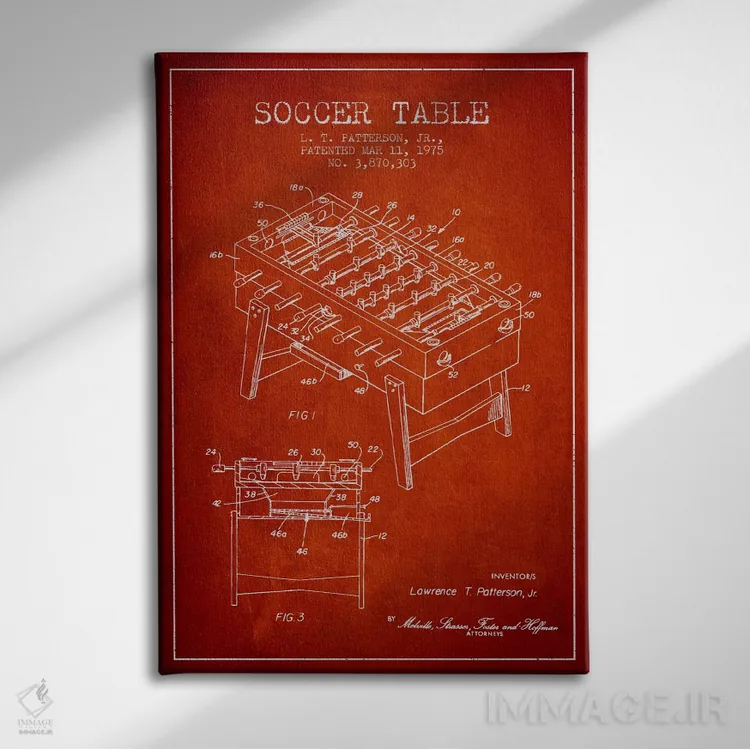 تابلو نقشهٔ ثبت اختراع فوتبال دستی قرمز اثر پیکسل کهنه (استودیو/نام هنری)