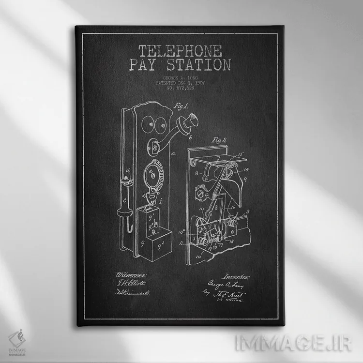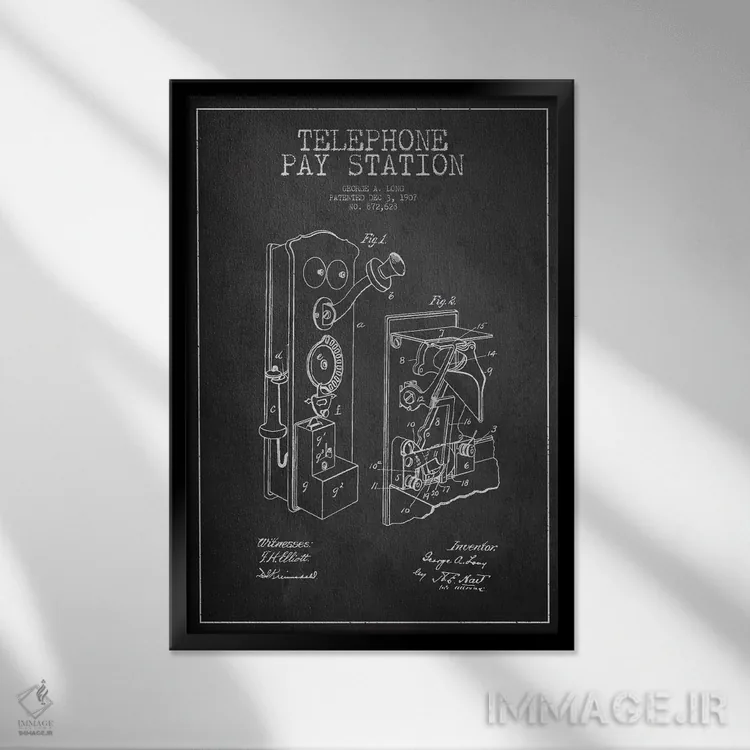 تابلو نقشهٔ ثبت اختراع تلفن بلند تیره اثر پیکسل کهنه (استودیو/نام هنری)