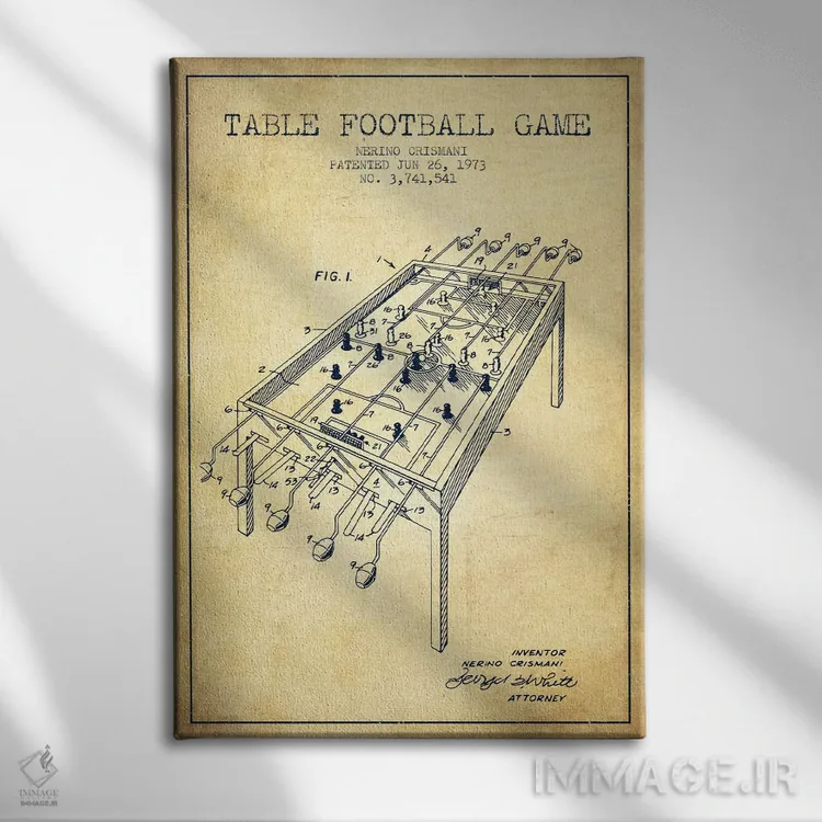 تابلو نقشهٔ ثبت اختراع فوتبال رومیزی ۲ (طرح کلاسیک) اثر پیکسل کهنه (استودیو/نام هنری)